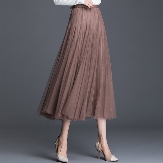 Womens Mid-Waist Pleated Flowy Mesh Lace Skirt