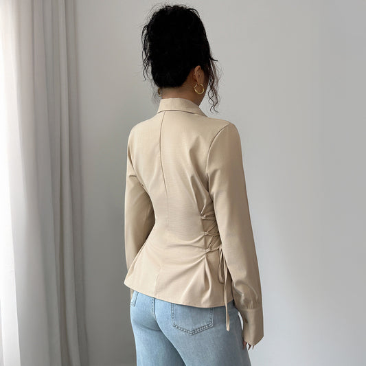 Camisa Feminina Manga Longa com Amarração nas Costas
