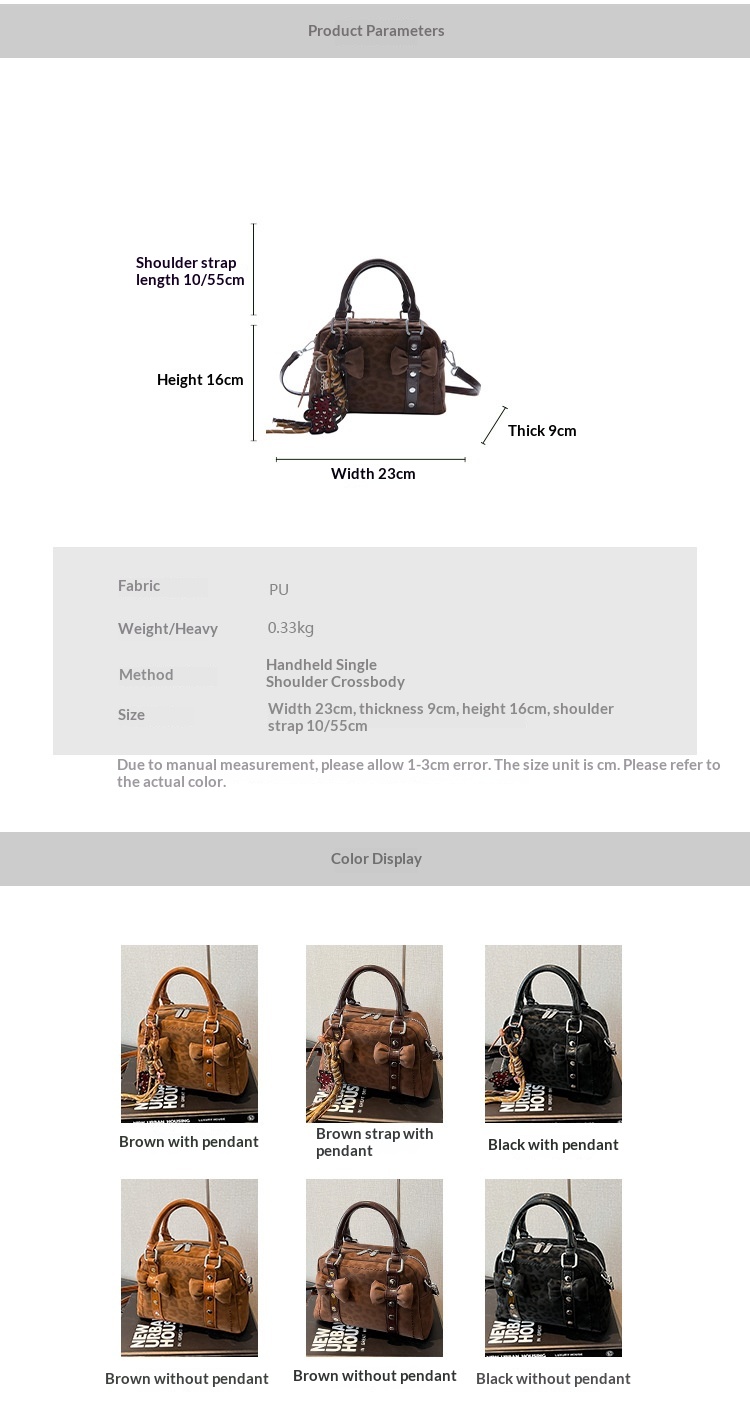 Colors: brown with pendant, coffee with pendant, black with pendant, brown without pendant, coffee without pendant, black without pendant