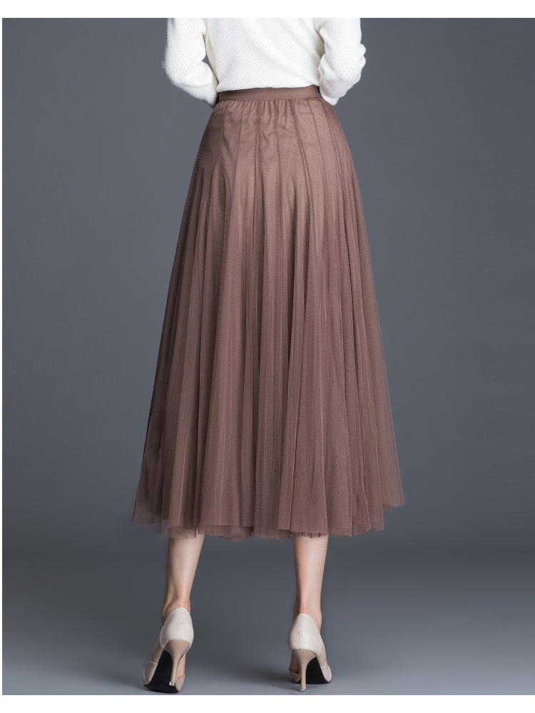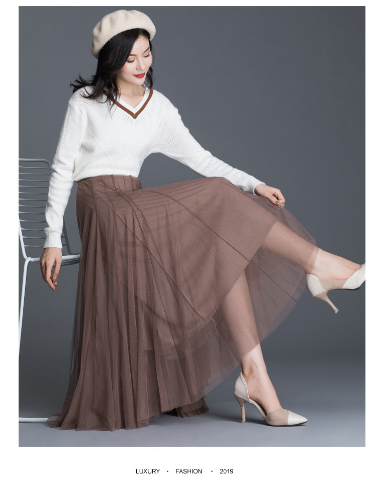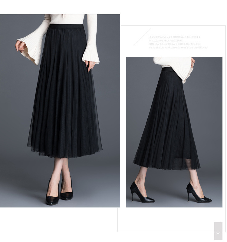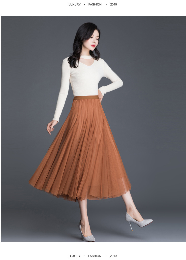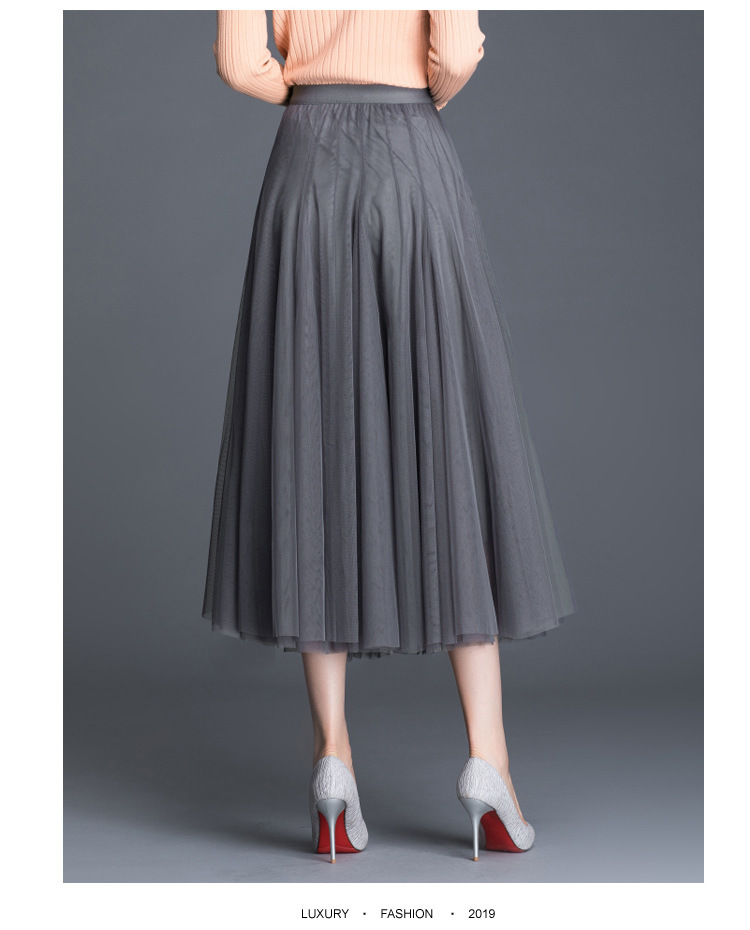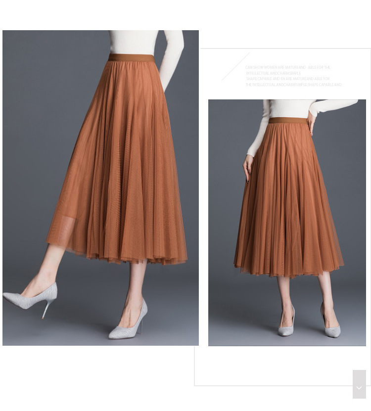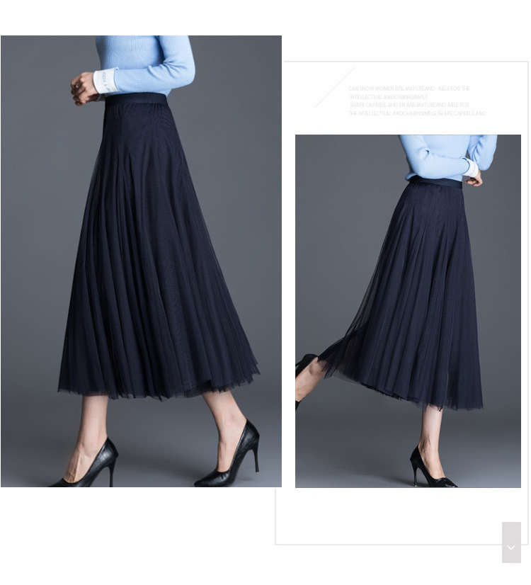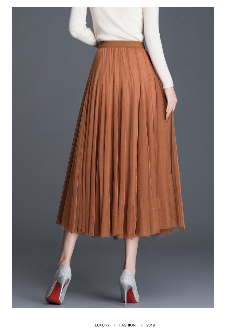 Womens Mid-Waist Pleated Flowy Mesh Lace Skirt