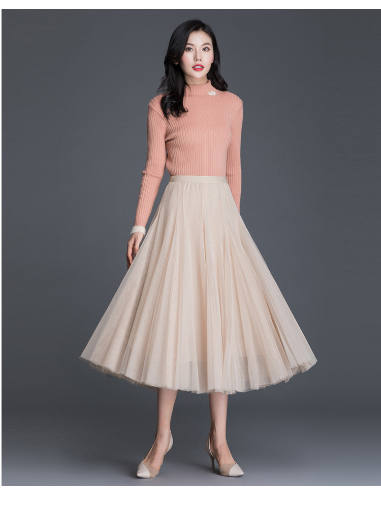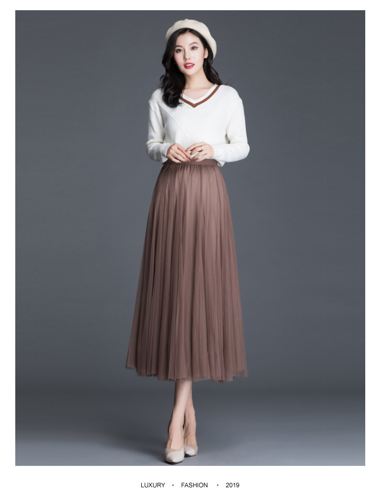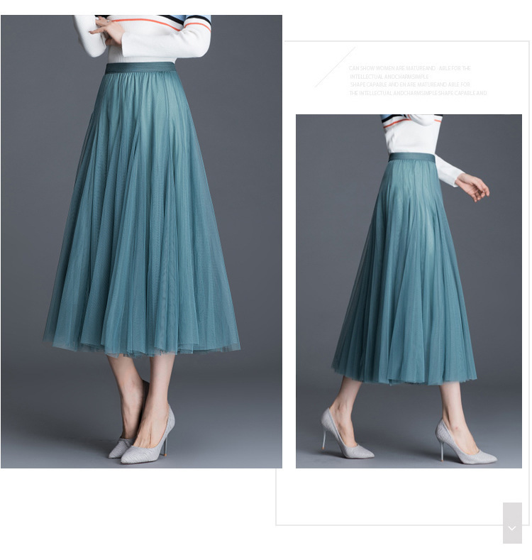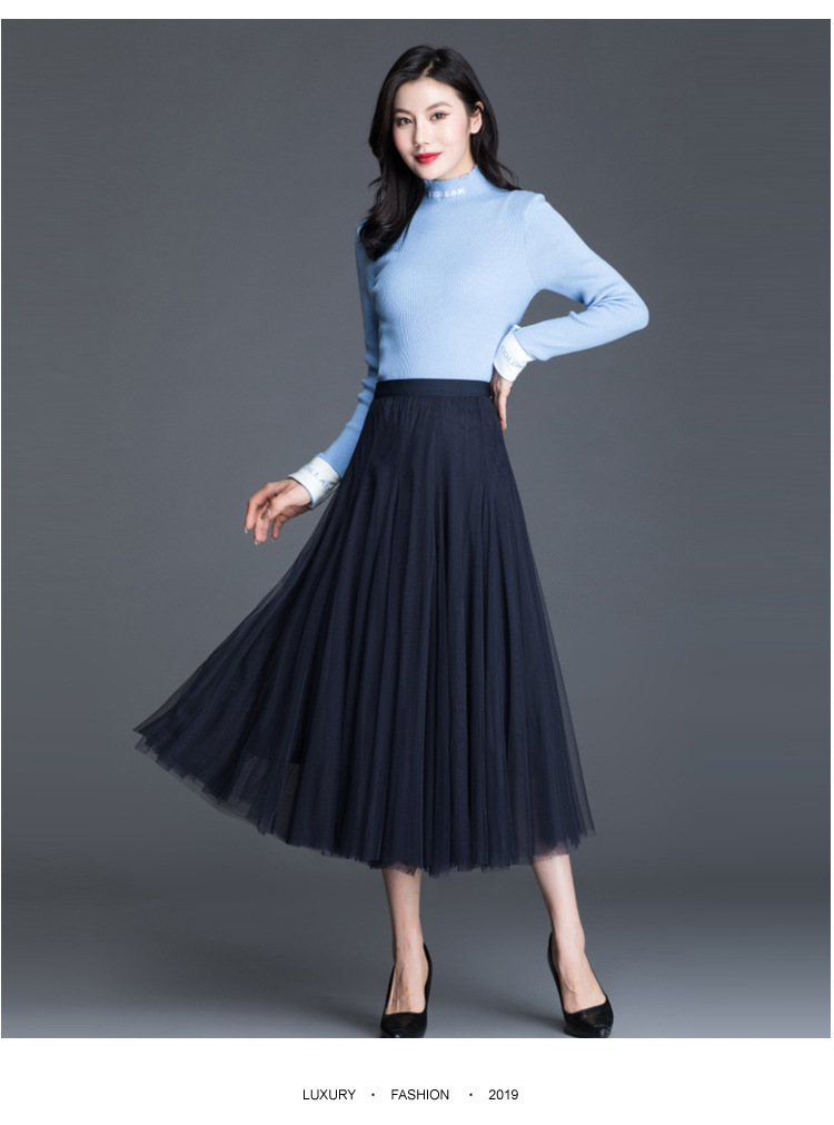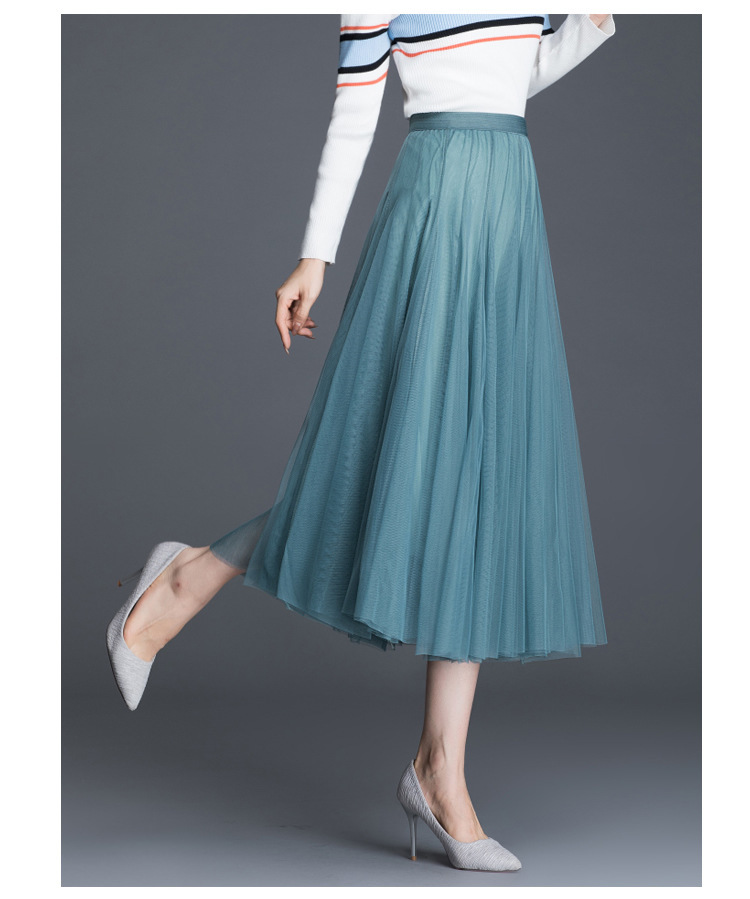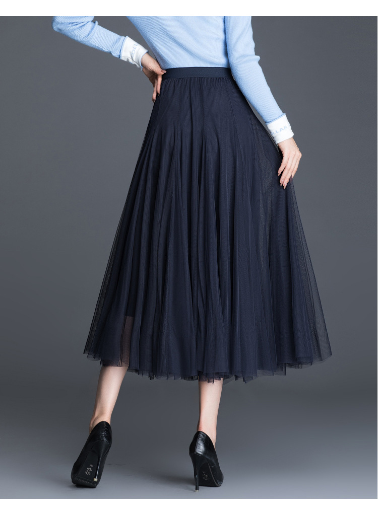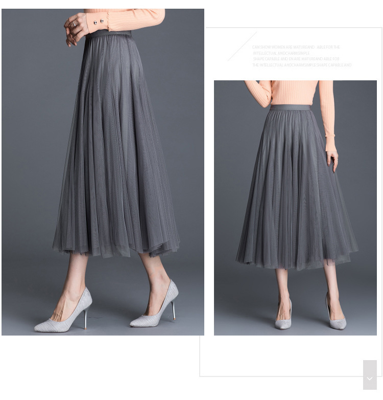 Womens Mid-Waist Pleated Flowy Mesh Lace Skirt