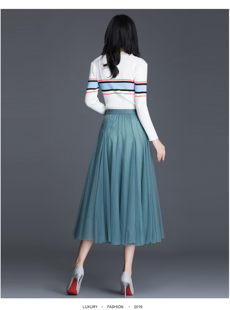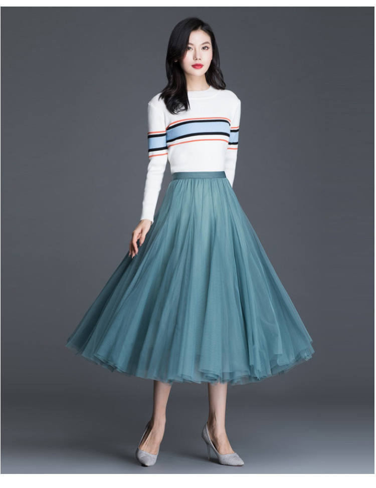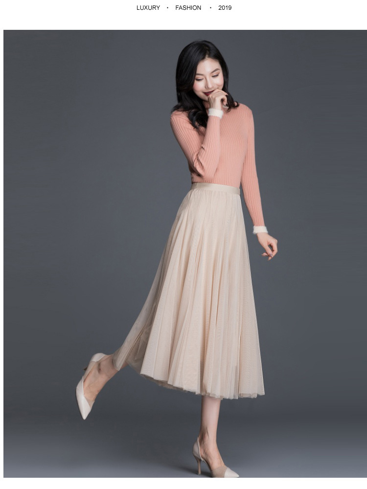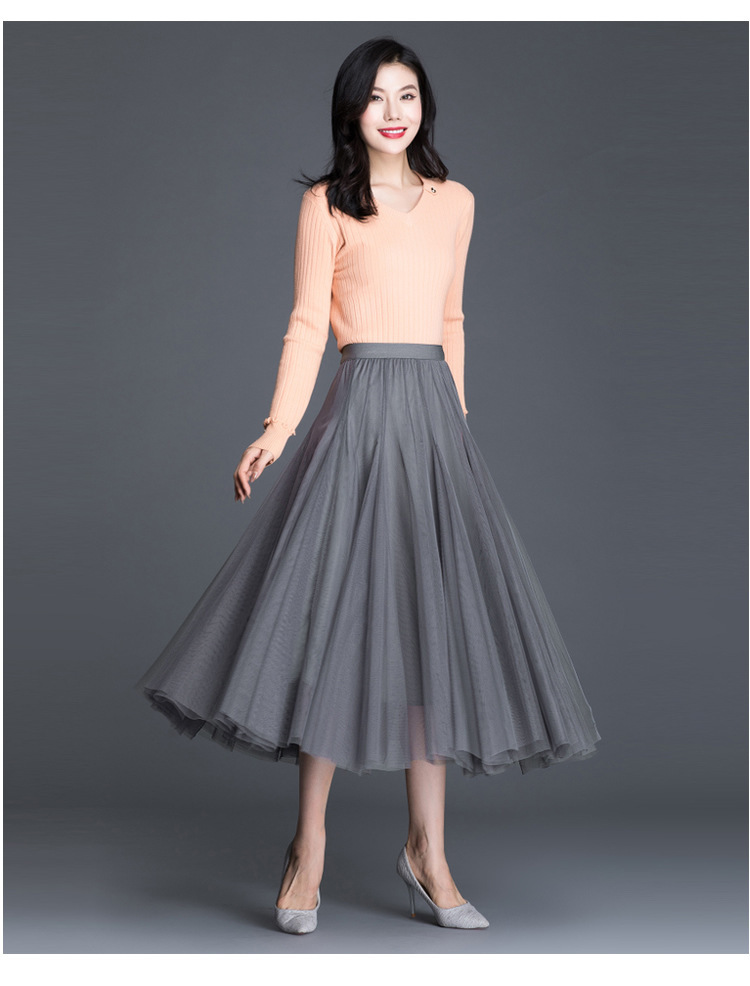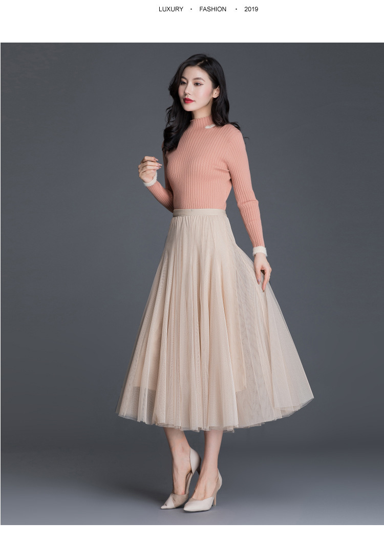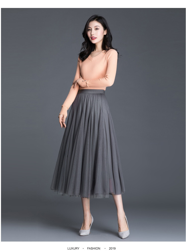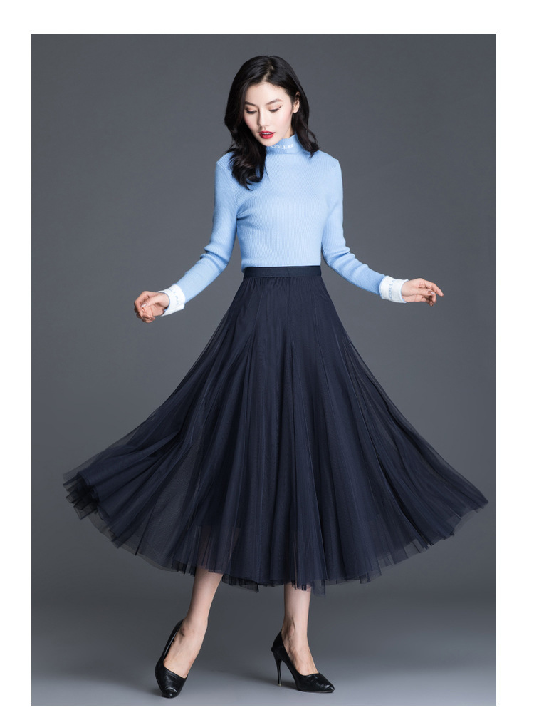 Womens Mid-Waist Pleated Flowy Mesh Lace Skirt