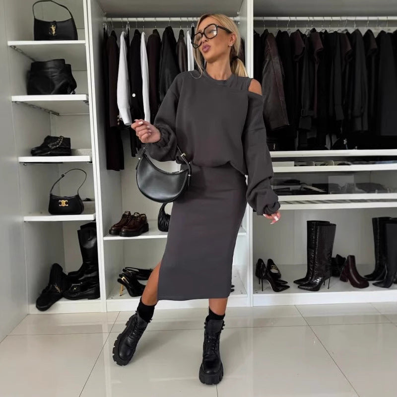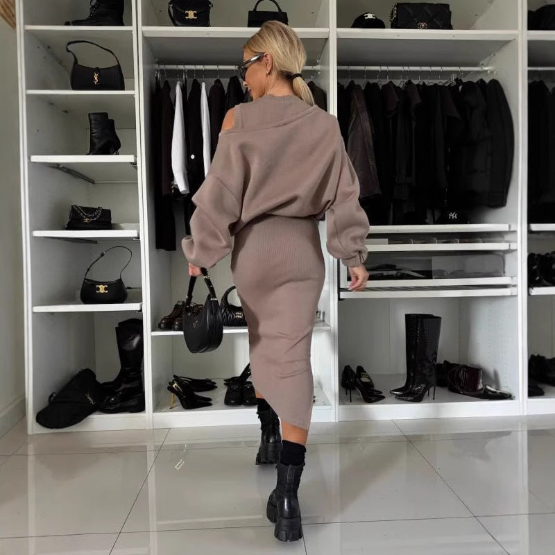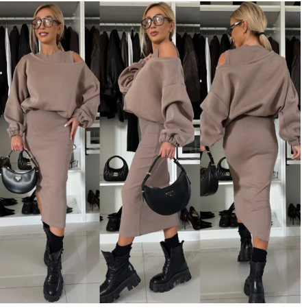 Womens Relaxed Off-shoulder Batwing-sleeve Cropped Top And Tank Dress Set