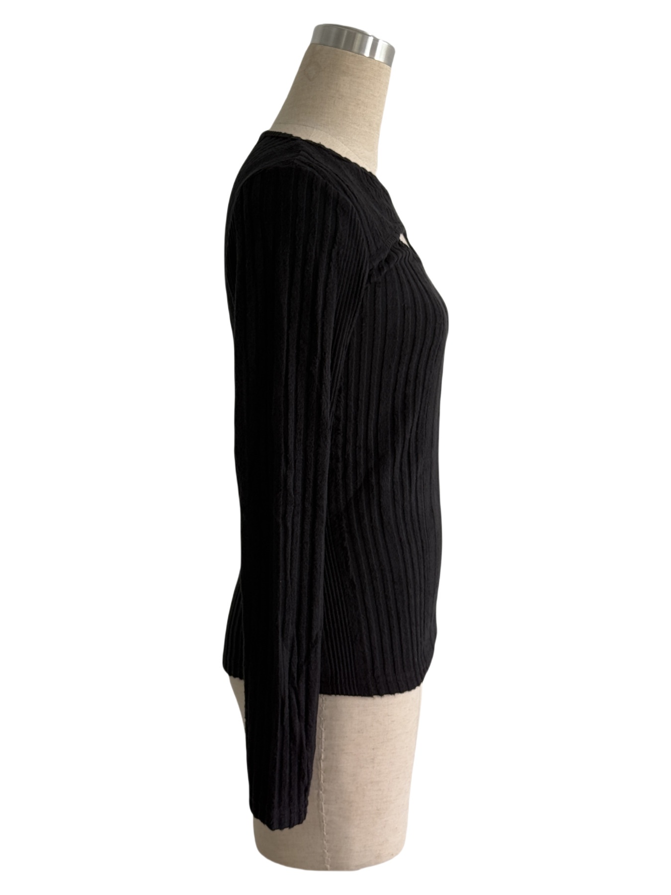 Womens Solid-Color Collar-Embellished Hollow-Out Long-Sleeve T-Shirt
